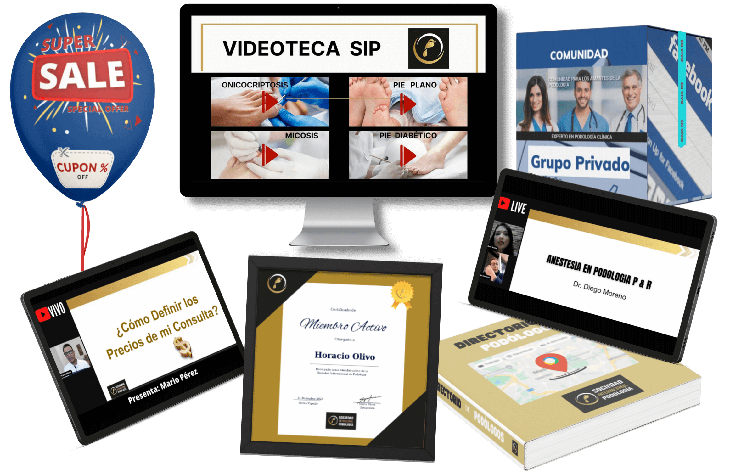 Haz parte del CLUB DEL PODÓLOGO, la membresia VIP de la Sociedad Internacional de Podología que te brinda todos los recursos necesarios para mantenerte actualizado en tu profesión, aprender marketing y emprendimiento para montar o administrar de manera efectiva tu Consultorio o Centro de Podología